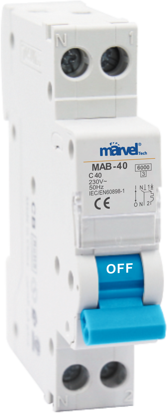 MAB-40 Mini Circuit Breaker (AC MCB) 1P+N short circuit 6 KA Rated Current I...